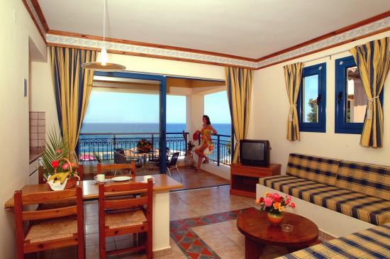 Az apartmankomplexum a Sissi üdülőövezetben található, és csak egy kis út választja el a tengertől. Kb. 350 m után 2 fürdőöbölhöz jutunk kavicsos stranddal és egy másik mesterséges homokos strandhoz (csak gyalog megközelíthető). A városközpont csak néhány percre van, a következő nagyobb város, Malia pedig körülbelül 7 km-re található. Kb. 50 m után egy buszmegállóhoz érünk. A repülőtér távolsága körülbelül 40 km, Chania körülbelül 190 km.