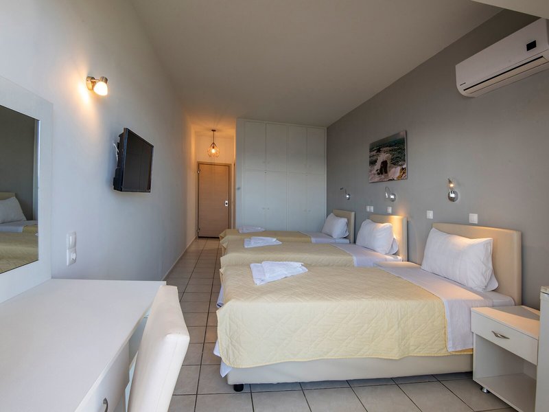 Szállás: Légkondicionáló és fűtés biztosítja a kellemes szobahőmérsékletet. A vendégek az erkélyről vagy teraszról élvezhetik a tengerre néző kilátást. A szobákban egy franciaágy és egy kanapéágy található. Babaágyak és pótágyak is rendelkezésre állnak. Széf, minibár és íróasztal is rendelkezésre áll. A konyhasarokban hűtőszekrény, valamint tea- és kávéfőző található. Vasalókészlet is rendelkezésre áll a vendégek kényelméért. Telefon, TV és ingyenes Wi-Fi is rendelkezésre áll. A zuhanyzóval és káddal felszerelt fürdőszobában hajszárító és sminktükör is található. Kerekesszékkel megközelíthető szobák kérésre állnak rendelkezésre. Családi szobák foglalhatók gyermekes szülők számára.