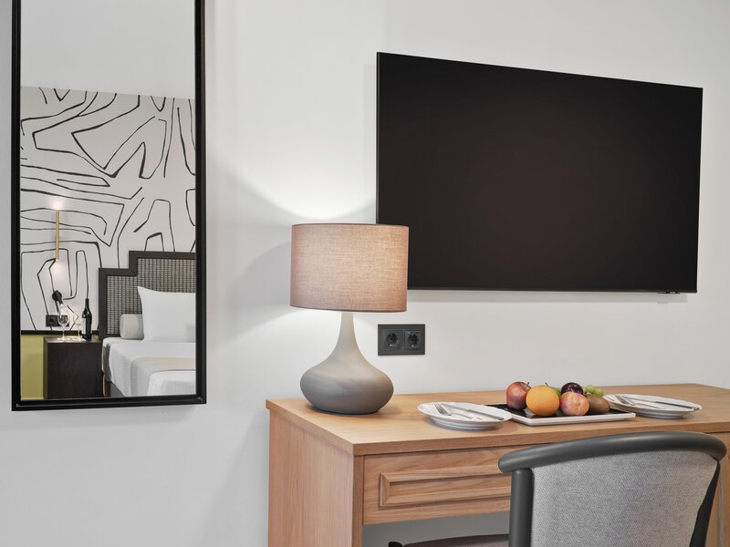 Mit Doppelbett oder Twinbett, 1 Extrabett (Schlafsofa), gefliestem Boden, Wasserkocher (kostenlos), Balkon oder Terrasse, Safe (kostenlos) und Sat-TV mit lokalen Sendern sowie zentral gesteuerter Klimaanlage (von Mai bis September). Badezimmer mit Dusche.