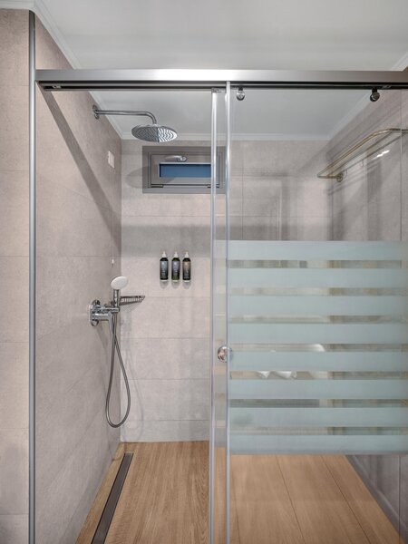 Egy franciaággyal vagy két egyszemélyes ággyal, egy pótággyal (kanapéággyal), járólapozott padlóval, ingyenes vízforralóval, erkéllyel vagy terasszal, ingyenes széffel, helyi csatornákkal ellátott műholdas TV-vel és központilag szabályozott légkondicionálóval (májustól szeptemberig). Fürdőszoba zuhanyzóval.