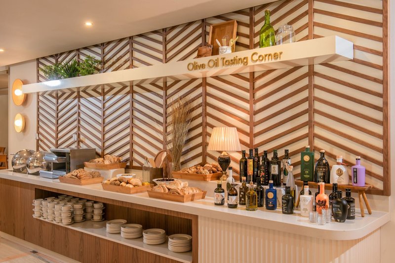 All Inclusive: Amerikanisches Frühstücksbuffet (7:15-10:15 Uhr) und Frühaufsteherfrühstück (Reservierung notwendig) im Hauptrestaurant. Spätaufsteherfrühstück, Mittagessen (12:30-15 Uhr) in der Taverne „Mistral“, Snacks von 10-17:30 Uhr, Kaffee, Tee und Kuchen von 16-17 Uhr. Abendessen (19-21:30 Uhr) in Buffetform im Hauptrestaurant mit Show-Cooking, Mitternachtssuppe und -snacks (23:30-0 Uhr). Eiscreme von 10-18 Uhr. Nationale und ausgewählte internationale alkoholische und alkoholfreie Getränke sind an den jeweils geöffneten Bars von 10-0 Uhr inklusive. Verschiedene Themenabende (griechisch, italienisch und Meeresfrüchte), 1x wöchentlich am Pool ein BBQ (nur in der Hochsaison und wetterabhängig). Die Gäste erhalten bei Ankunft einen mit Bier, Wasser und Softdrinks aufgefüllten Kühlschrank (1x inklusive), sowie einen Obstkorb und eine Flasche Hauswein.