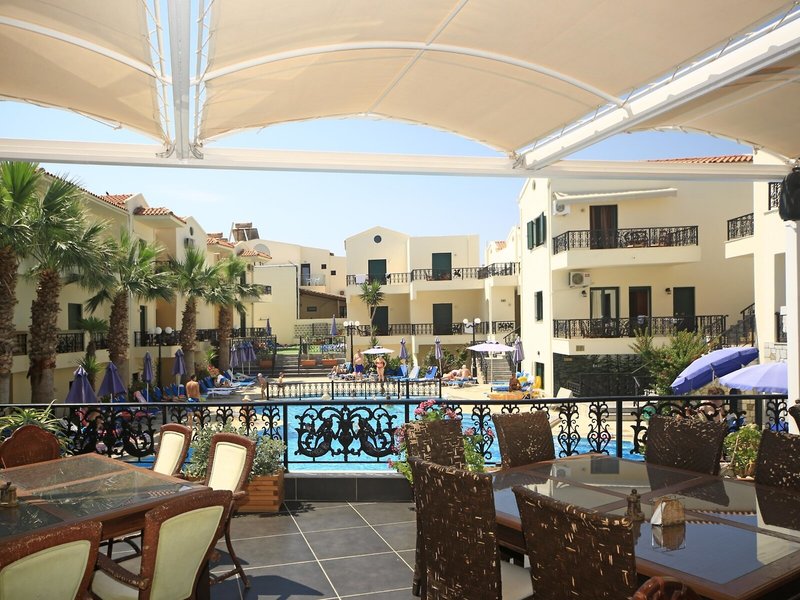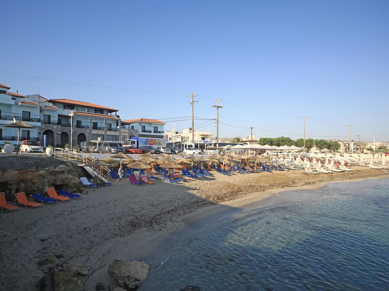 - Strand: feinsandig, felsig, Strandlänge: ca. 20 m, hoteleigen, Liegestühle