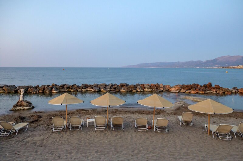Das Hotel liegt an einer kleinen Badebucht am Strand. Das Zentrum von Chersonissos mit zahlreichen Einkaufs- und Unterhaltungsmöglichkeiten erreichen Sie in ca. 1 km. Der Flughafen von Heraklion liegt in ca. 25 km Entfernung, der Flughafen von Chania liegt in ca. 170 km Entfernung.