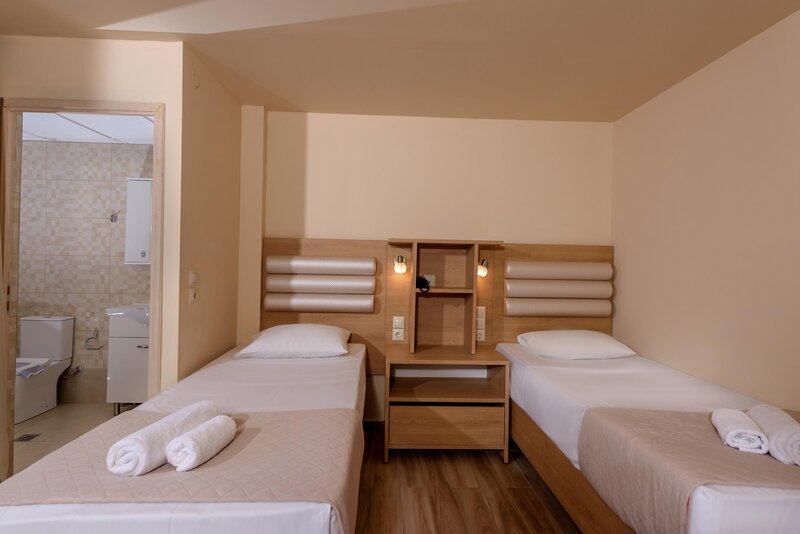 Die Zimmer zur Landseite sind ausgestattet mit Bad oder Dusche/WC, Föhn, Klimaanlage (gegen Gebühr/ in der Hochsaison voraussichtlich Mitte Juli bis Mitte August inklusive), Telefon, Mietsafe, Sat.-TV, Minikühlschrank sowie Balkon. Wahlweise sind diese mit Meerblick buchbar. Die Familienzimmer sind bei gleicher Ausstattung geräumiger und sind ebenfalls mit Meerblick buchbar. Die Apartments bieten bei sonst gleicher Ausstattung wie die Zimmer zur Landseite ein separates Schlafzimmer.