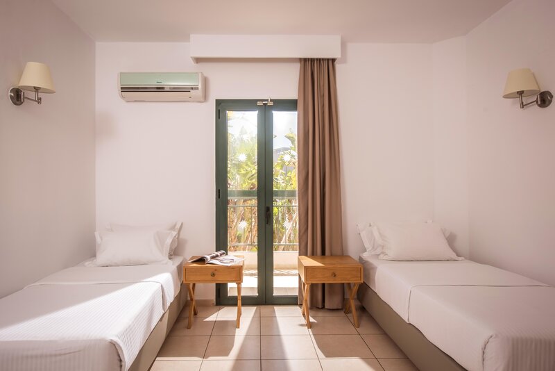 Die modern eingerichteten Standard-Zimmer verfügen über Bad oder Dusche/WC, Föhn, individuell regulierbare Klimaanlage,Telefon, Sat.-TV, Minikühlschrank, Mietsafe und Balkon oder Terrasse. Die Maisonettes sind bei sonst gleicher Ausstattung wie die Standard-Zimmer auf 2 Ebenen errichtet.