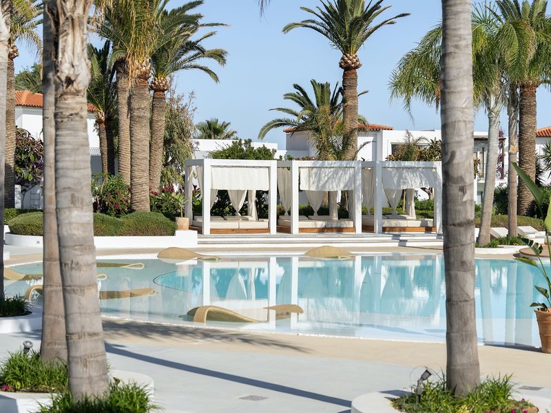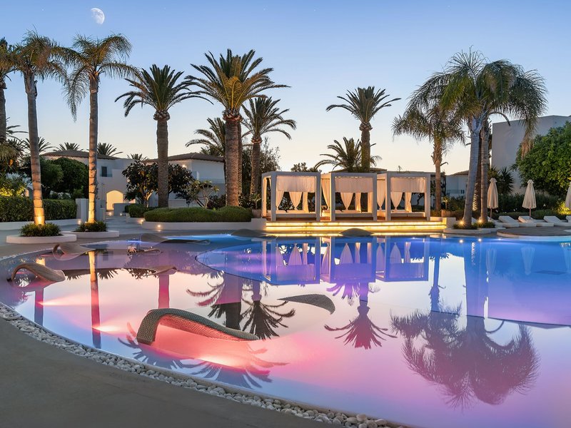 Ausstattung: Das luxuriöse Boutiquehotel bietet eine entspannte Urlaubsatmosphäre und kombiniert die Ästhetik eines Inseldorfs mit der Eleganz und den exklusiven Annehmlichkeiten eines gehobenen Resorts. Es versprüht Retro-Glamour durch seine glänzenden Flure, fabelhaften Terrassen, prächtige Gästezimmer und persönlichen Service. Der Komplex besteht aus einem Hauptgebäude und insgesamt 67 Suiten im Bungalowstil, Maisonetten und Villen, die alle individuell eingerichtet und mit handgefertigten Möbeln und Designerstoffen eingerichtet sind. Jeweils gegen Gebühr können das mediterrane Buffetrestaurant und ein Gourmetrestaurant sowie eine externe Taverne genutzt werden,. Ebenfalls sorgen die Lobbybar und die "Confetti Pool Lounge" für Erfrischungen. Ein großer Meerwasser-Außenpool mit Whirlpool, ein 300 Meter langer Strand, eine Reihe von Freizeitaktivitäten und hochmoderne Wellnesseinrichtungen stehen den Gästen ebenfalls zur Verfügung. Sonnenliegen und Schirme sind am Pool und am Strand vorhanden und inklusive. Wi-Fi ist in der gesamten Hotelanlage inklusive.