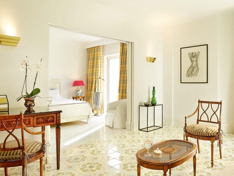 Die Suiten bestehen aus einem kombinierten Wohn-/Schlafraum, einem separaten Schlafzimmer (mit Schiebetür getrennt) und verfügen über Klimaanlage (individuell regulierbar), Fliesenboden, Safe, Espresso-Maschine, Kaffee-/Teestation, Minibar (gegen Gebühr), Telefon, Fernseher (Flatscreen, im Schlafzimmer, deutsches Programm, DVD-Player) und ein Bad mit Dusche, WC, Bademantel und Slipper, Vergrößerungsspiegel, luxuriöse Pflegeprodukte und Föhn. Der große Balkon (Landblick, Richtung Parkplatz) verfügt über Sitzgelegenheiten und lädt zum Entspannen ein.