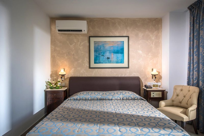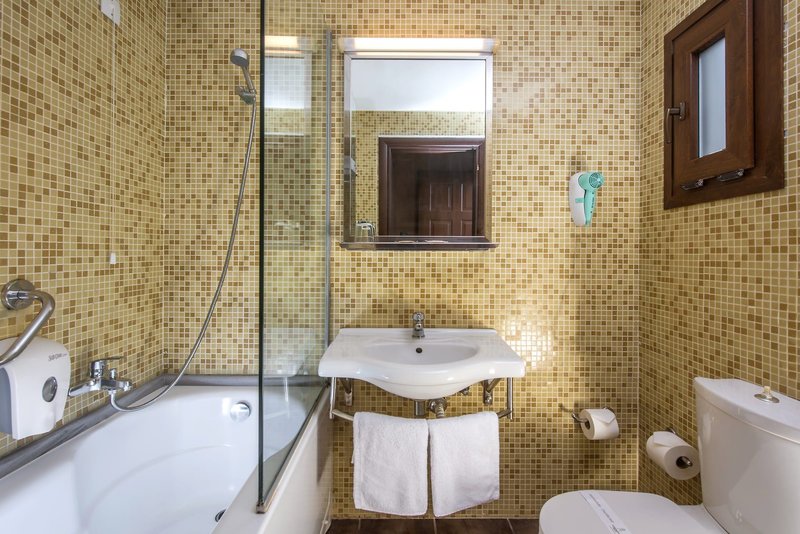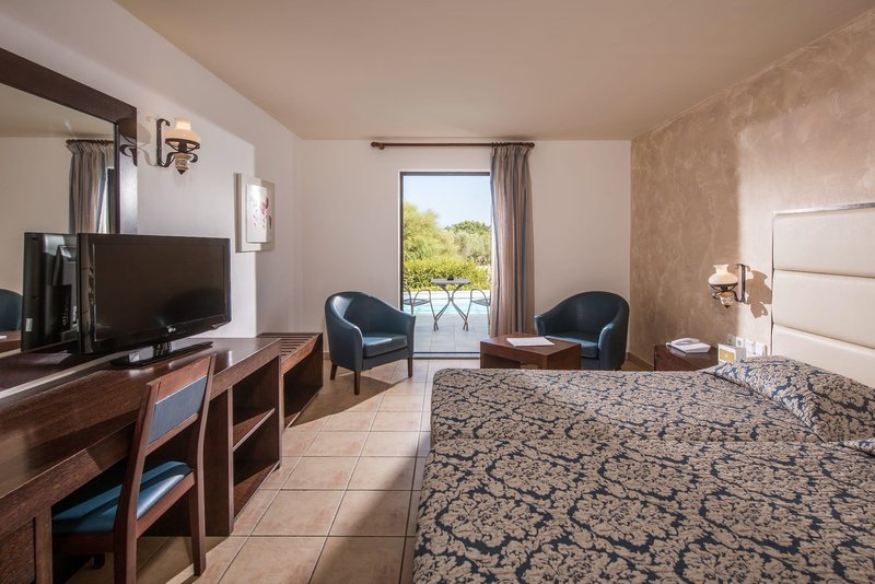 Doppelzimmer: Die Zimmer sind im landestypischen Stil eingerichtet und verfügen über Bad oder Dusche/WC, Föhn, Klimaanlage, Sat.-TV, Wi-Fi (inklusive), Minikühlschrank sowie Balkon oder Terrasse (D). Wahlweise auch als Super-Sparzimmer (SSZ) oder gegen Aufpreis mit seitlichem Meerblick (DMS/DIS) buchbar. Wahlweise auch zur Alleinnutzung (DE) buchbar.