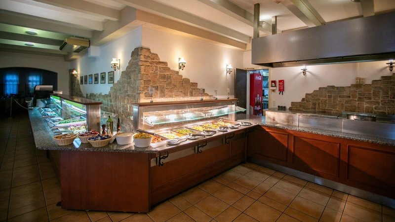 All Inclusive: Frühstück (7:30-10 Uhr), Mittagessen (13-14 Uhr), Abendessen (18:30-21 Uhr) im Hauptrestaurant "Alexander" mit vegetarischen, internationalen und griechischen Speisen. Von 12-18 Uhr gibt es an der Beachbar Sandwiches und Eis. Kaffee, Tee, Bier und Wein gibt es von 18 bis 23 Uhr an der Lobbybar. Außerdem stehen den Gästen die À-la-carte-Restaurants der anderen "Herostels" All Inclusive Hotels zur Verfügung (Reservierung erforderlich). Lokale Softdrinks, Säfte, Bier, Wein, Ouzo, Raki, Auswahl an internationalen alkoholischen Getränken, Kaffee und Tee sind von 10-23 Uhr an der jeweils geöffneten Bar inklusive.