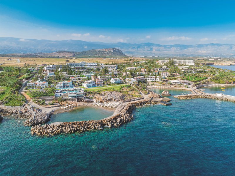Ausstattung: Die renommierte und 2024 renovierte Anlage verfügt über insgesamt 361 Zimmern (118 Zimmer im Haupthaus und 243 in den Bungalowgebäuden gelegen), Eingangsbereich mit Lobby und Rezeption, Aufzüge im Hauptgebäude, Einkaufsarkaden, Tagungsraum, Hauptrestaurant, 3 À-la-carte-Restaurants, eine Hauptbar, 5 weitere Bars und ein Mini-Spa. In der Außenanlage befinden sich die drei 2024 renovierten, Meerwasser-Swimmingpools mit Sonnenliegen und Sonnenschirmen, ein separates Meerwasser-Kinderbecken, ein weiteres Kinderbecken mit Süßwasser, kleinem Piratenschiff und Wasserrutschen, ein beheiztes Hallenbad im Spa-Bereich (Süßwasser, operiert nur in der Nebensaison) und ein Relax-/Ruhepool. Handtücher für Pool und Strand erhalten die Gäste mit einem Kartensystem im Hotel. Liegen und Sonnenschirme sind am Strand inklusive (nach Verfügbarkeit). Der zum Sommer 2025 neu errichtete Aquapark mit Wasserspielen und -rutschen im Iberostar Waves Creta Panorama kann mitgenutzt werden.