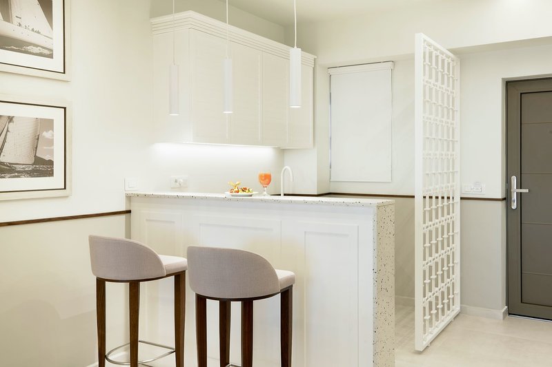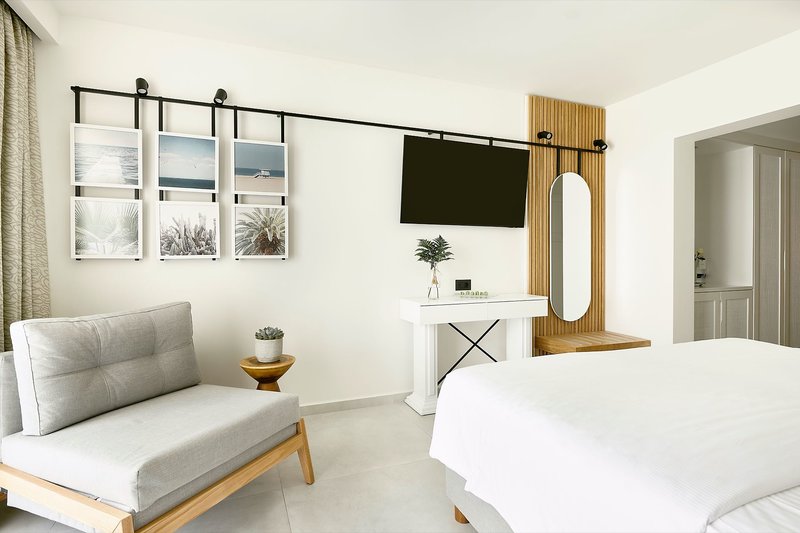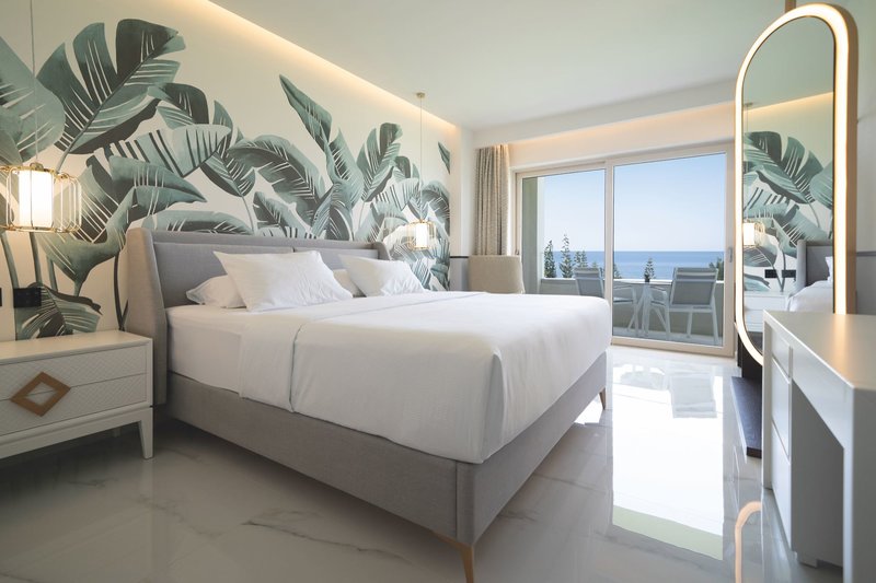 Suite Superior Meerblick (HER040I): Die ca. 90 m² großen Suiten bieten ausreichend Platz und liegen in den oberen Etagen im Haupthaus. Sie verfügen über zwei Bäder, einen separaten Schlafraum, einen Wohnbereich mit Sofabett, TV, Klimaanlage, Telefon, Dusche/WC, Safe und Balkon (SUM/U2M).