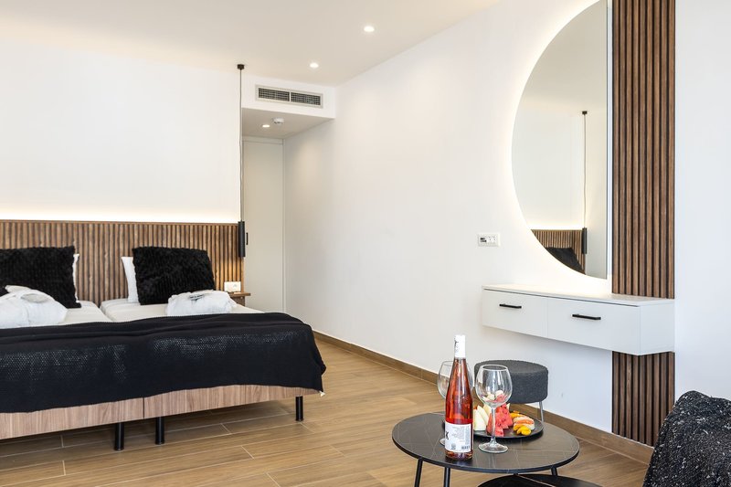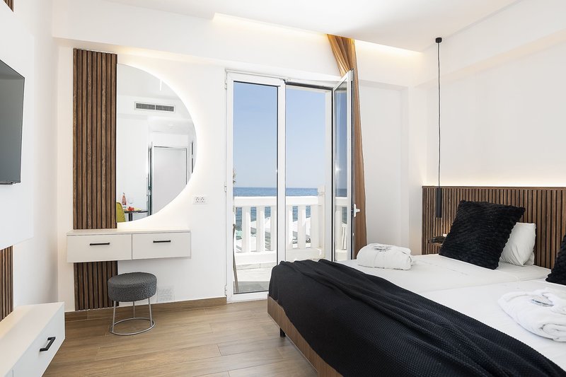 Doppelzimmer Superior: Verfügen über die gleiche Ausstattung wie die Doppelzimmer, wurden jedoch 2024 renoviert und bieten außerdem einen 45"- Sat.-TV (DSU). Wahlweise gegen Aufpreis auch mit seitlichem Meerblick buchbar (D2S).