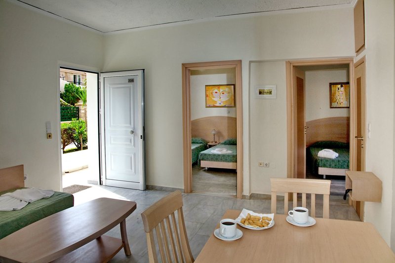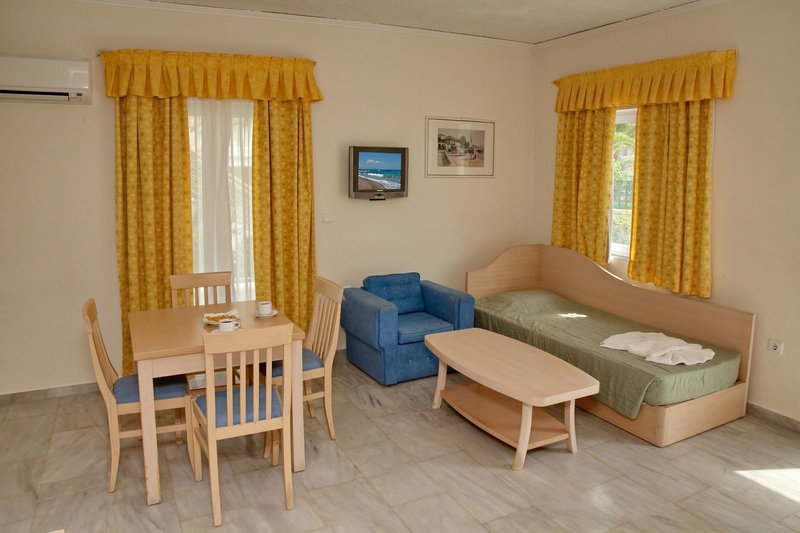 All Inclusive: Kontinentales Frühstücksbuffet (7:30-10 Uhr), Mittag-(12:30-14 Uhr) und Abendessen (18:30-21 Uhr) ebenfalls in Buffetform. Lokale alkoholische und alkoholfreie Getränke wie Mineralwasser, Erfrischungsgetränke, Fruchtsäfte, Fassbier, Hauswein, Ouzo, Raki griechischer Brandy, Longdrinks und alkoholfreie Cocktails sind 11-23 Uhr inklusive. Kaffee/Tee und Kuchen (11:30-17:30 Uhr), Eiscreme und Snacks (11:30-12:30 und 15:30-17 Uhr).