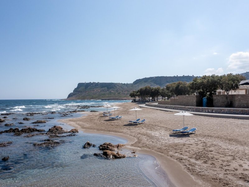 Lage & Umgebung Das komfortable Feriendorf ist ruhig gelegen nahe einer wunderschönen Sandbucht. Der ca. 300 m lange, flach abfallende Sandstrand wird durch eine Mole geschützt. Das malerische Fischerdorf Sissi ist etwa 900 m entfernt und über einen angelegten Fußweg zu erreichen. Der bezaubernde Hafen mit seinen gemütlichen Tavernen, Geschäften und Kafenions, den typisch griechischen Kaffeestuben, lädt zum Verweilen ein. In ca. 7 km Entfernung finden Sie die archäologische Stätte von Malia mit Ausgrabungen des berühmten minoischen Palastes. Das Stadtzentrum von Malia ist etwa 10 km entfernt, wo sich weitere gute Einkaufs- und Unterhaltungsmöglichkeiten befinden. Die Bushaltestelle direkt vor dem Hotel bietet Anbindungen in benachbarte Orte, aber auch nach Malia oder Heraklion.