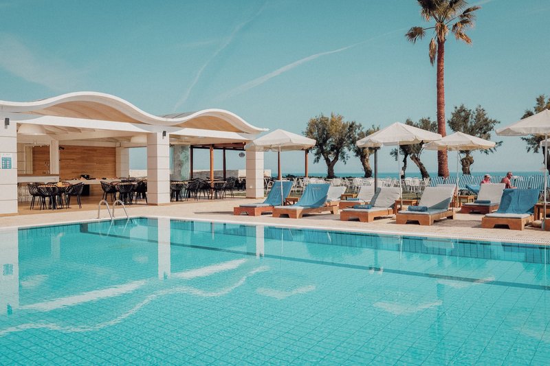Ausstattung: Das familienfreundliche Hotel verfügt über 179 Zimmern, die auf das Haupthaus und mehrere 1- und 2-stöckige Reihenbungalows verteilt sind. Im Haupthaus befinden sich der Empfangsbereich mit Rezeption (24 h), Lift, ein Aufenthaltsbereich, Lobbybar, Pool-/Snackbar, Sat.-TV-Ecke, Wi-Fi (inklusive) sowie ein Restaurant mit Terrasse. In der schönen Gartenanlage stehen 4 Meeerwasser-Swimmingpools mit Sonnenterrasse und Liegewiese sowie ein separater Kinderpool zur Verfügung. Liegen und Sonnenschirme sind am Pool inklusive und am Strand gegen Gebühr erhältlich.
