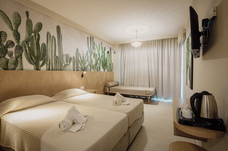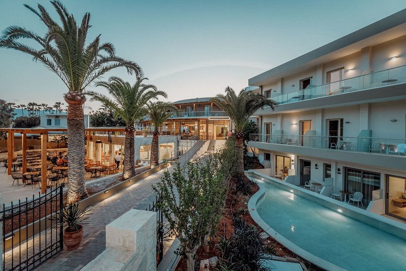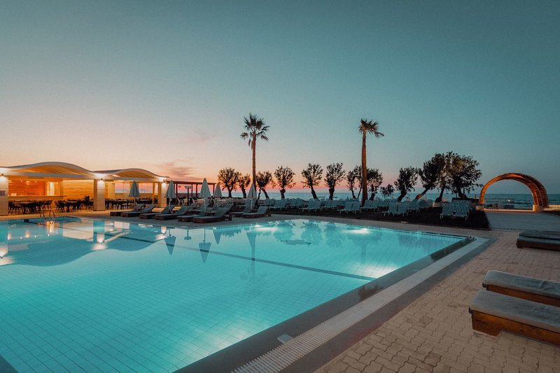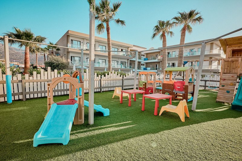 Felszereltség: A családbarát szálloda 179 szobával rendelkezik, amelyek a főépületben és több 1 és 2 szintes teraszos bungalóban helyezkednek el. A főépületben található a recepció recepcióval (24 órás), lift, társalgó, lobby bár, medence/snack bár, műholdas TV sarok, Wi-Fi (beleértve) és egy teraszos étterem. A gyönyörű kertekben 4 tengervizes úszómedence napozóterasszal és füves napozóval, valamint külön gyermekmedence található. A nyugágyak és a napernyők az ár a medencénél, a strandon pedig felár ellenében állnak rendelkezésre.
