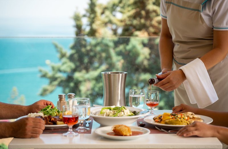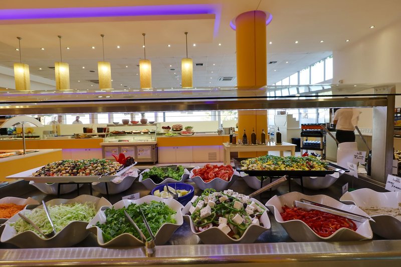 All Inclusive: Büféreggeli (7-10 óra között), ebéd (12:30-14:30) és vacsora (18:30-21:30). Hetente egyszer vacsora az "Elia Cretan" à la carte étteremben vagy az olasz à la carte étteremben benne van az árban (19:00-22:00 óra között, foglalás szükséges). Sütemények és péksütemények 16:00 és 17:00 óra között, könnyű harapnivalók 10:00 és 11:00 óra között kaphatók. Koktélokat a kijelölt nyitvatartási időben szolgálnak fel, üdítők, sör, bor, kávé, tea és helyi alkoholos italok pedig 10:00 és éjfél között kaphatók a bárban.