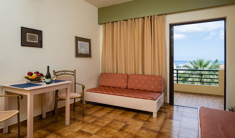 kényelmesen berendezett stúdiókban kád/WC, hajszárító, légkondicionálás/fűtés, telefon, műholdas TV és bérelhető széf található. Ezekből korlátozott számban gazdaságos szobaként is lehet foglalni. A tágasabb apartmanokban egy további hálószoba is található, ugyanolyan felszereltséggel, mint a stúdiószobákban.