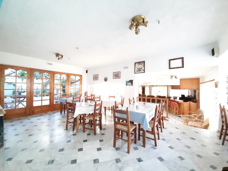 Mit Frühstück oder Halbpension buchbar. Das "kontinentale" Frühstück wird im Hotel angeboten, bei Buchung mit Halbpension erhalten Sie zurücklich ein Abendessen in Menüform in einer nahegelegenen Taverne (ca. 200 m entfernt).