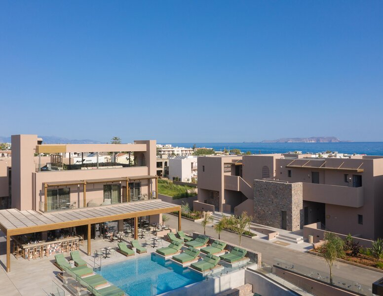 Das Hotel liegt in Analipsis unmittelbar an einem Strand. Es befindet sich ca. 750 m von der Innenstadt entfernt. Bis nach Heraklion sind es ca. 2 km. Die Entfernung zum Flughafen Heraklion beträgt ca. 20 km, nach Chania sind es ca. 160 km.