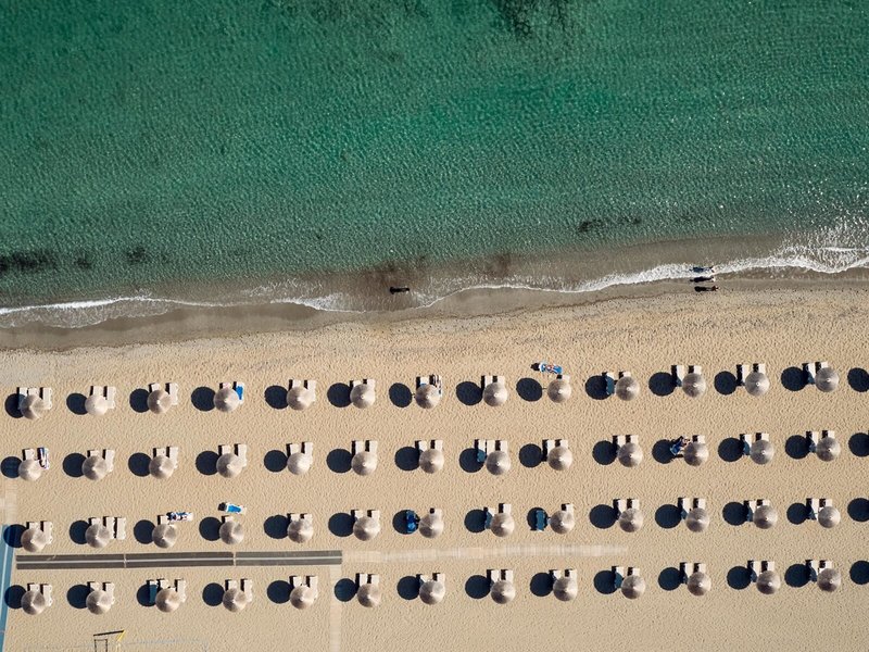 - Strand: Sand, flach abfallend, öffentlich, Liegen: ohne Gebühr, Sonnenschirme: ohne Gebühr