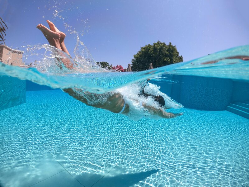 Kinderbecken und Spielplatz.