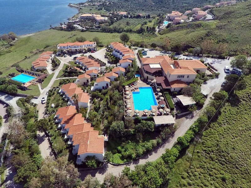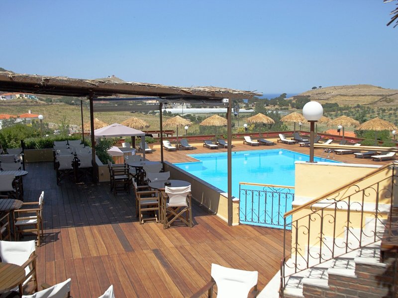 Elhelyezkedés és környezet A szálloda egy domboldalon található, körülbelül 500 méterre a történelmi Molyvos-vártól és körülbelül 10 percre Molyvos központjától, ahonnan fantasztikus kilátás nyílik az Égei-tengerre és a várra. A Mytilene repülőtér körülbelül 45 km-re található.