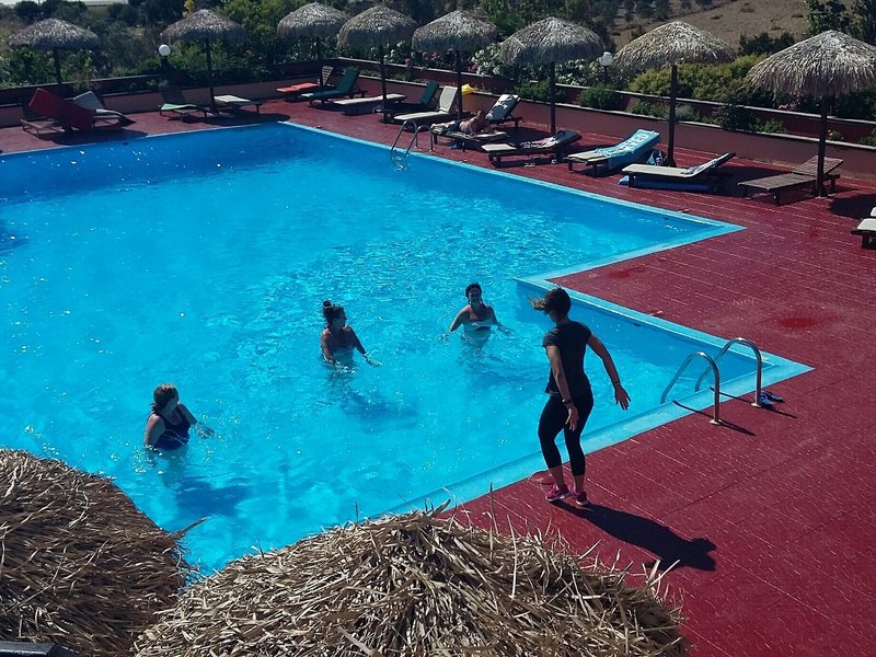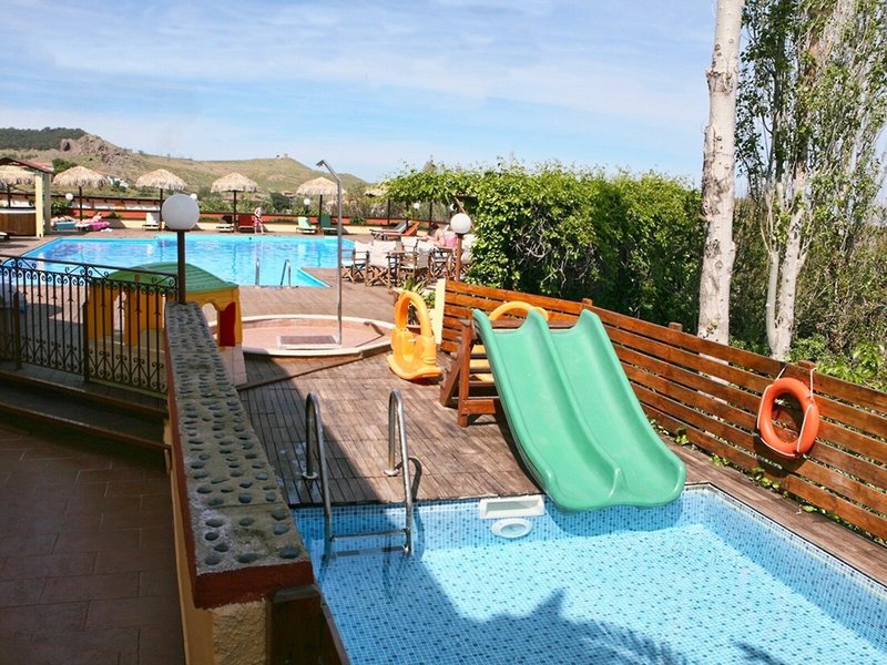 - Medencék: Gyermekmedence, kültéri medence, napernyők a medencénél, nyugágyak a medencénél