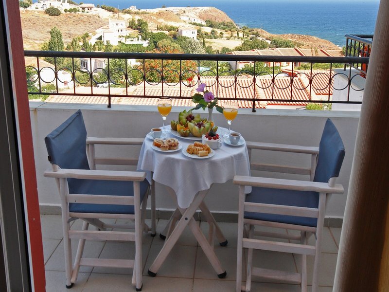 Lage & Umgebung Das Hotel liegt an einem Hang, etwa 500 m von der historischen Burg von Molyvos und rund 10 min vom Zentrum von Molyvos entfernt, wo es eine fantastische Aussicht auf die Ägäis und die Burg genießt. Der Flughafen Mytilini ist ungefähr 45 km entfernt.