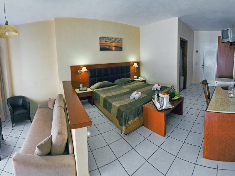 Szállás: A szobák légkondicionálóval és egyénileg szabályozható fűtéssel felszereltek. A vendégek erkélyükről vagy teraszukról élvezhetik a tengerre néző kilátást. A szobákban franciaágy vagy kanapéágy található. Pótágyak kérhetők. A széf a legjobb védelmet nyújtja a vendégek holmijainak. A konyhasarok hűtőszekrénnyel, mini hűtőszekrénnyel és tea-/kávéfőzővel is felszerelt. A vendégek kényelmét vasalókészlet is szolgálja. Ezenkívül közvetlen telefonvonal, műholdas/kábelcsatornás TV és ingyenes wifi is rendelkezésre áll. A vendégek igénybe vehetik az ágyazási szolgáltatást is. A fürdőszobákban zuhanyzó, fürdőkád és pezsgőfürdő található. Hajszárító is biztosított. A fürdőszobákban piperecikkek szolgálják a nagyobb kényelmet. Kerekesszékkel megközelíthető szobák akadálymentesített fürdőszobával is foglalhatók. A komplexum családi és dohányzó szobákat kínál.
