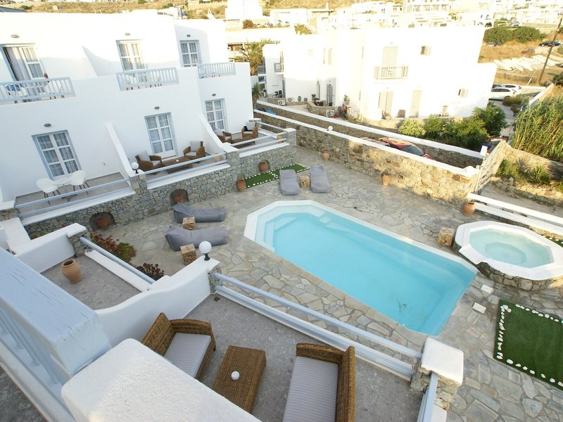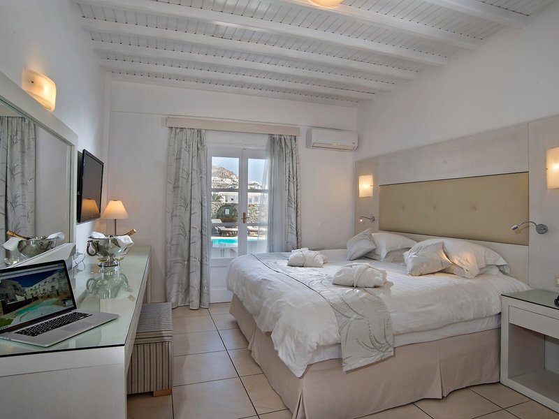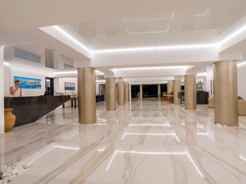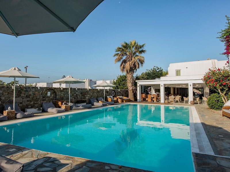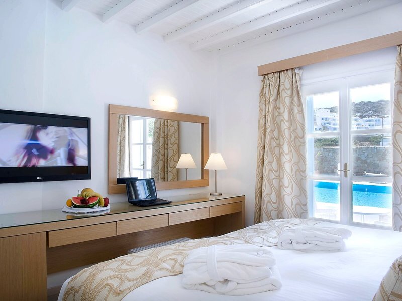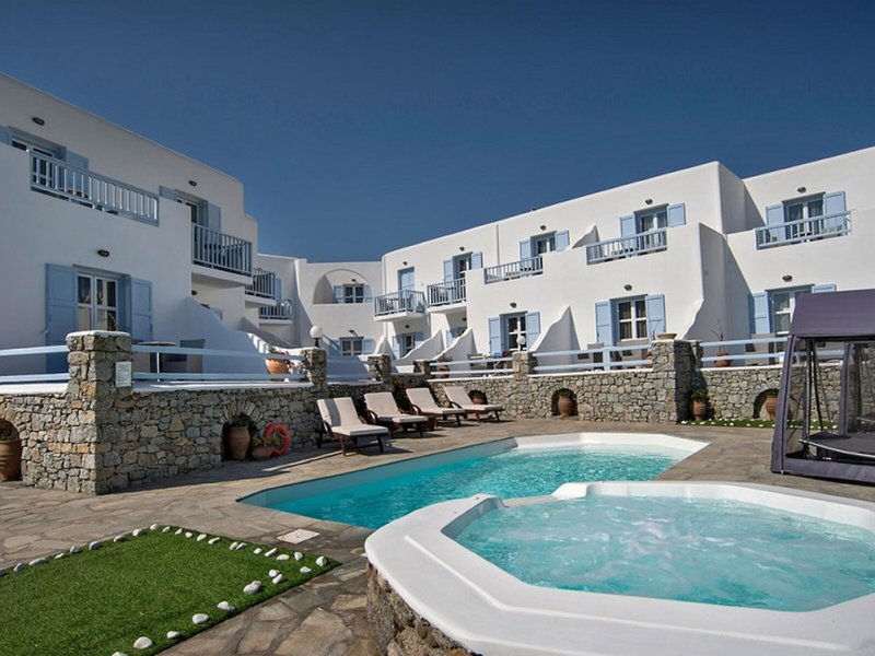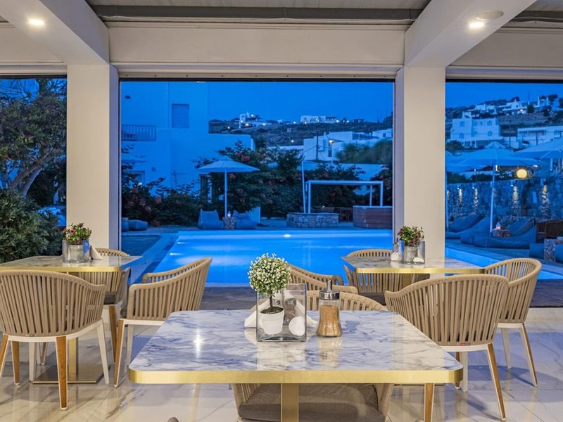Elhelyezkedés és környék Ez a szálloda közvetlenül az Ornos strandon található. A városban éttermek, bárok, üzletek és tömegközlekedési kapcsolatok találhatók. Mykonos városa, a turizmus központja körülbelül 2 km-re található. További látnivalók közé tartozik a Kis Velence (kb. 1,5 km), a szélmalmok (kb. 2 km), a Folklórmúzeum (kb. 2,5 km) és a Panagia Paraportiani templom (kb. 2,5 km). Mykonos repülőtere körülbelül 2 km-re található.