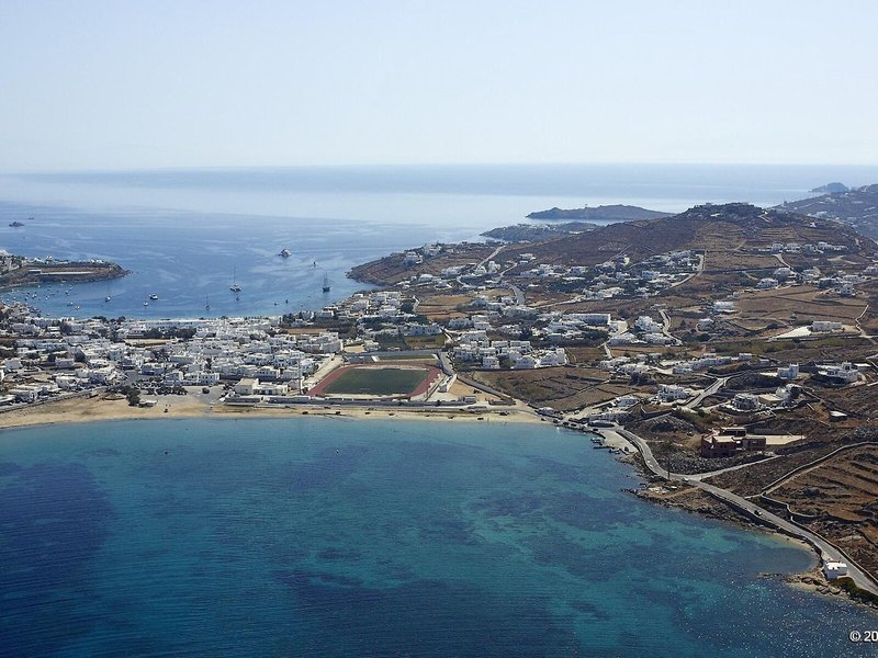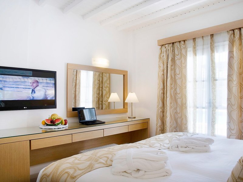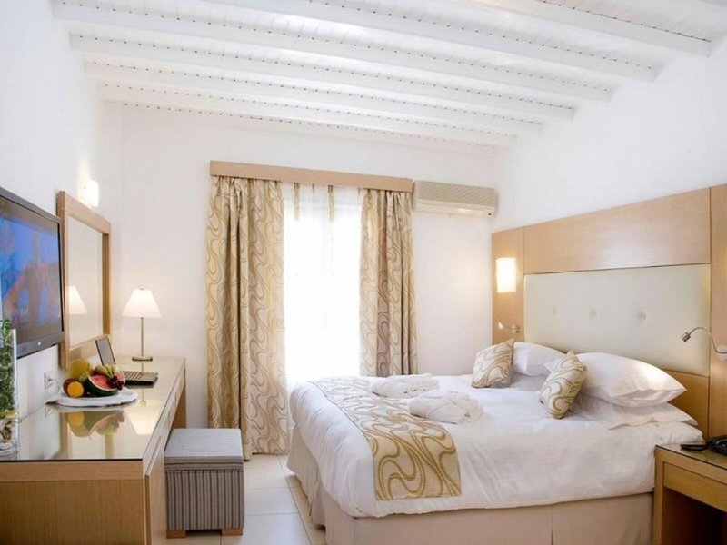 Lage & Umgebung Dieses Hotel befindet sich direkt am Strand von Ornos. In dem Ort gibt es Restaurants, Bars, Läden, und Anschlüsse an den öffentlichen Nahverkehr. Mykonos-Stadt, Mittelpunkt des Tourismus, liegt ca. 2 km entfernt. Weitere Anziehungspunkte sind Klein-Venedig (ca. 1,5 km), die Windmühlen (ca. 2 km), das Folklore-Museum (ca. 2,5 km) und die Kirche Panagia Paraportiani (ca. 2,5 km). Der Flughafen Mykonos ist ca. 2 km entfernt.