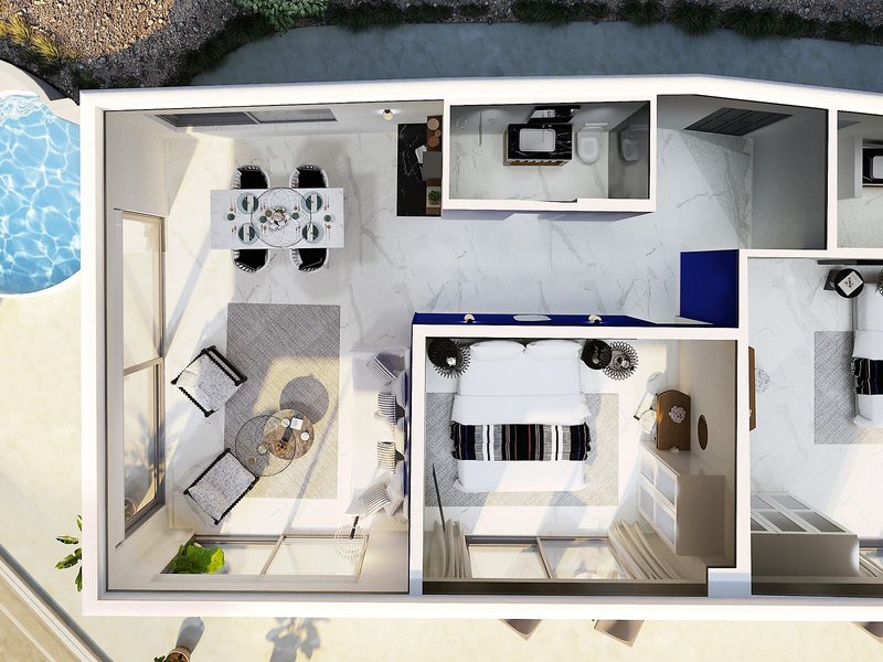 - Medencék: Gyermekmedence, kültéri medence, napernyők a medencénél, nyugágyak a medencénél
