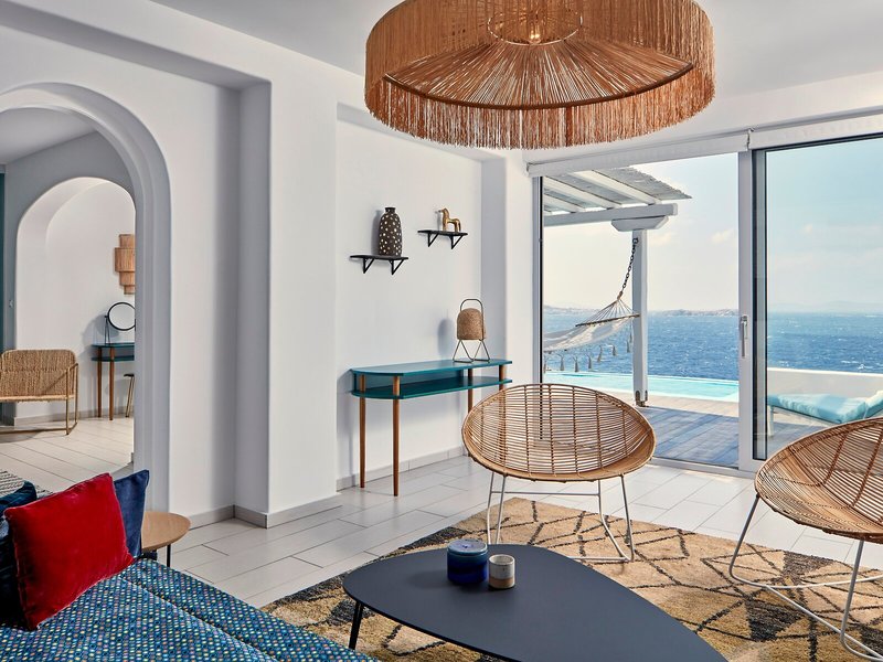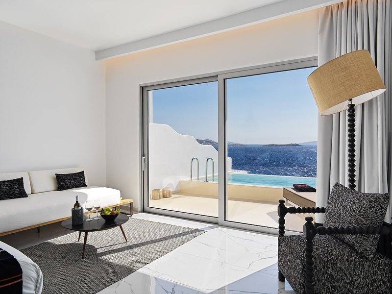 Elhelyezkedés és környezet A szálloda elhelyezkedése nem csak szép, hanem előnyös is. Mykonos városának szélén található, mindössze 300 m-re a városközponttól, a legközelebbi strand pedig körülbelül 1 km-re található. A szálloda a város nevezetességeit és a régió homokos strandjait egyaránt kínálja.