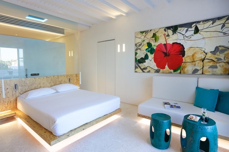 Die Standardzimmer verfügen über Dusche/WC, Föhn, Doppelbett oder zwei Einzelbetten, Klimaanlage, Sat-TV, Telefon, Mietsafe, Minibar/Minikühlschrank, Bügelset, Schreibtisch, CD-Player sowie Balkon oder Terrasse mit Meerblick. Die Suiten sind geräumiger und verfügen auch über Schlaf- und Wohnbereich mit Doppelbett und Schlafsofa, Espresso Kaffeemaschine sowie Balkon oder Terrasse. Diese sind auch mit Meerblick buchbar. Die Suiten mit Balkon und Meerblick sind auch mit Jacuzzi oder mit privaten Pool buchbar.