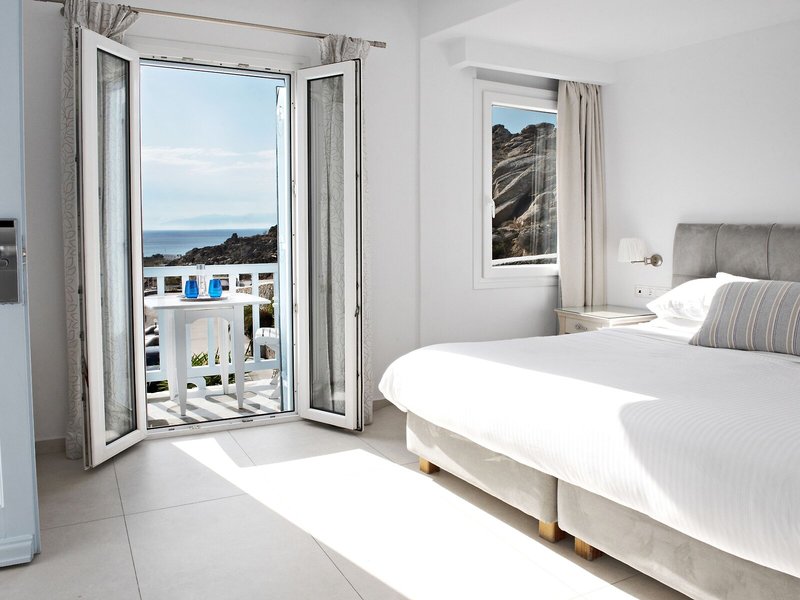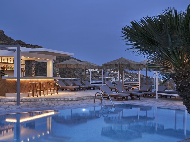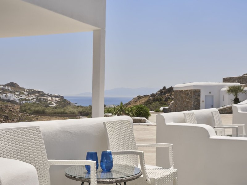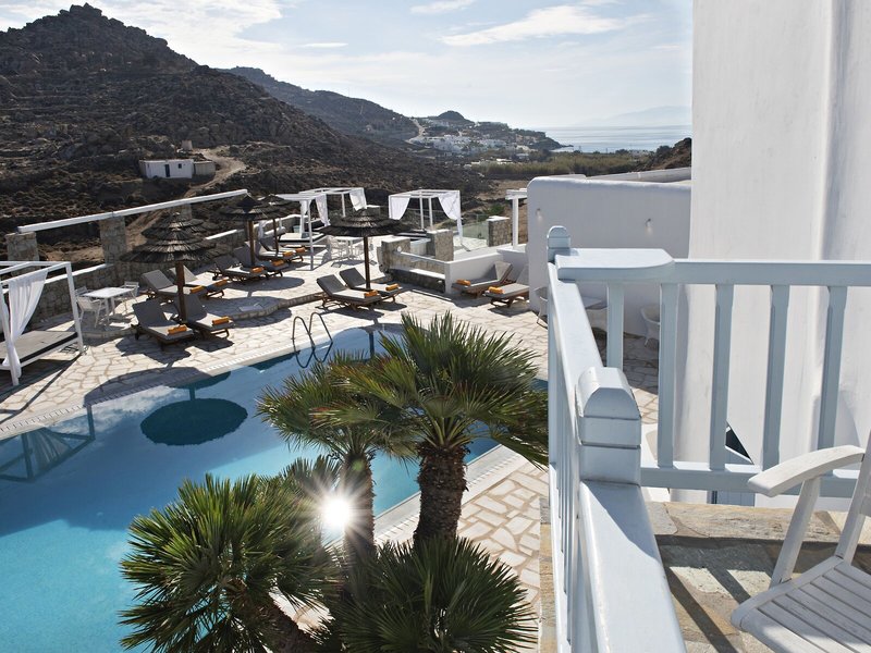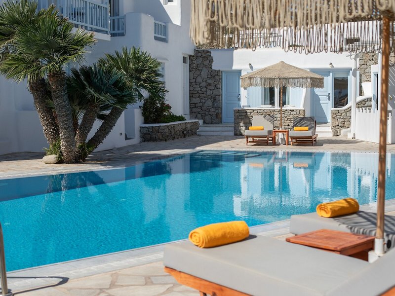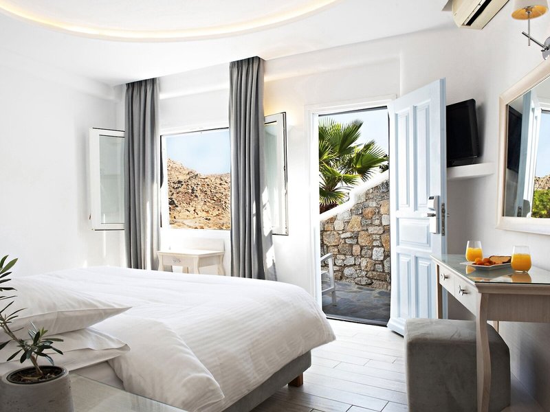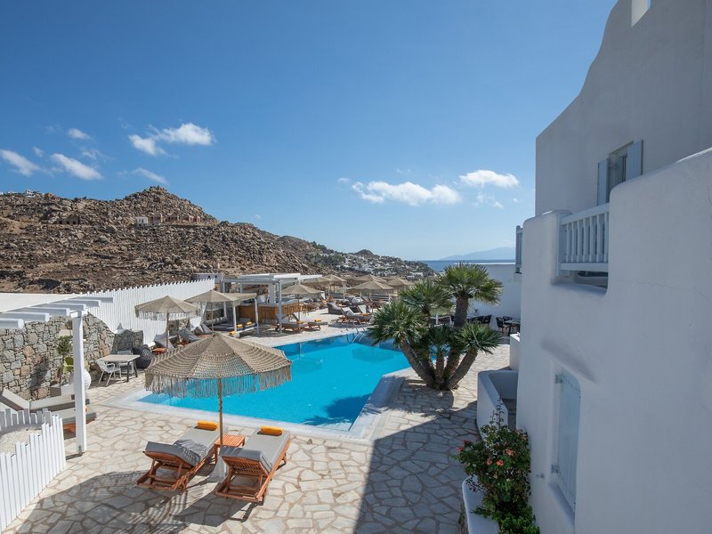 Fekvése és környéke A szálloda mindössze 300 méterre található a Paradise strandtól és mindössze 5 km-re Mykonostól. A Mykonos városközpontjába közlekedő busz megállója a szálloda közelében található, és a transzferidő a repülőtérről körülbelül 10 perc.