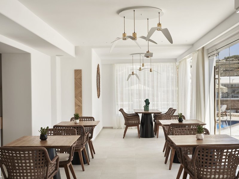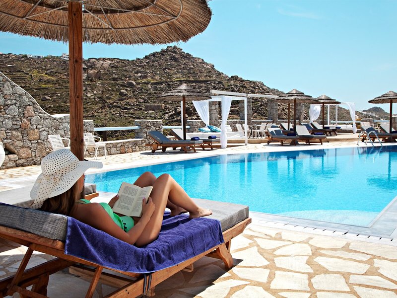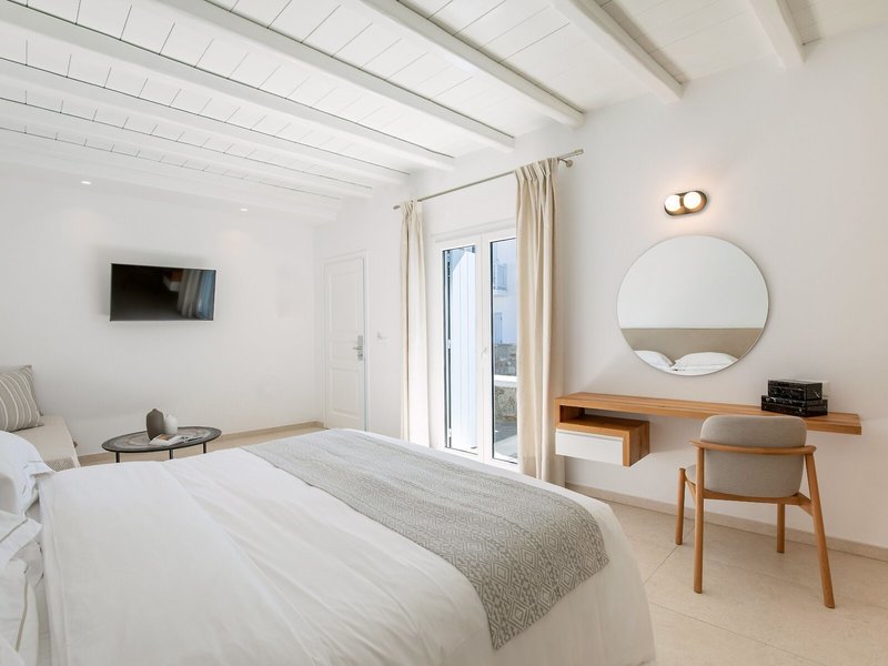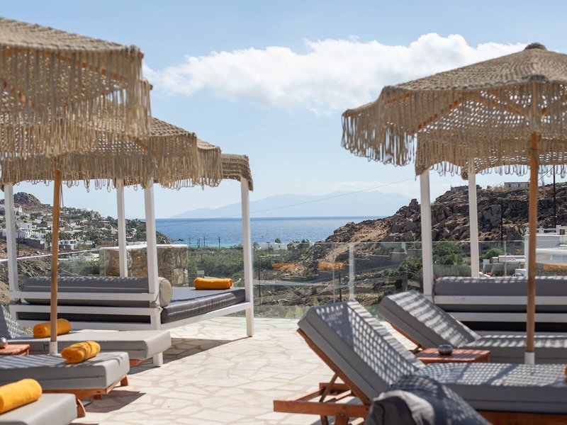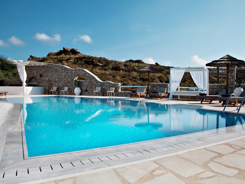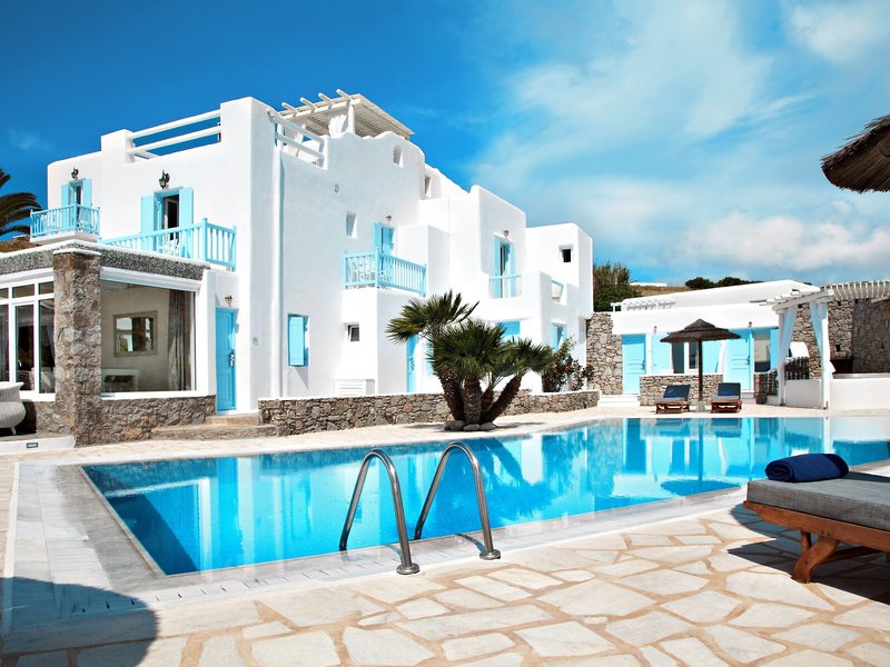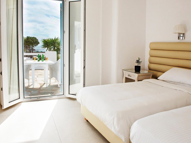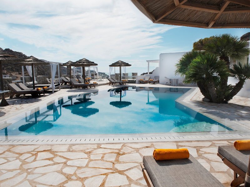 Fekvése és környéke A szálloda mindössze 300 méterre található a Paradise strandtól és mindössze 5 km-re Mykonostól. A Mykonos városközpontjába közlekedő busz megállója a szálloda közelében található, és a transzferidő a repülőtérről körülbelül 10 perc.