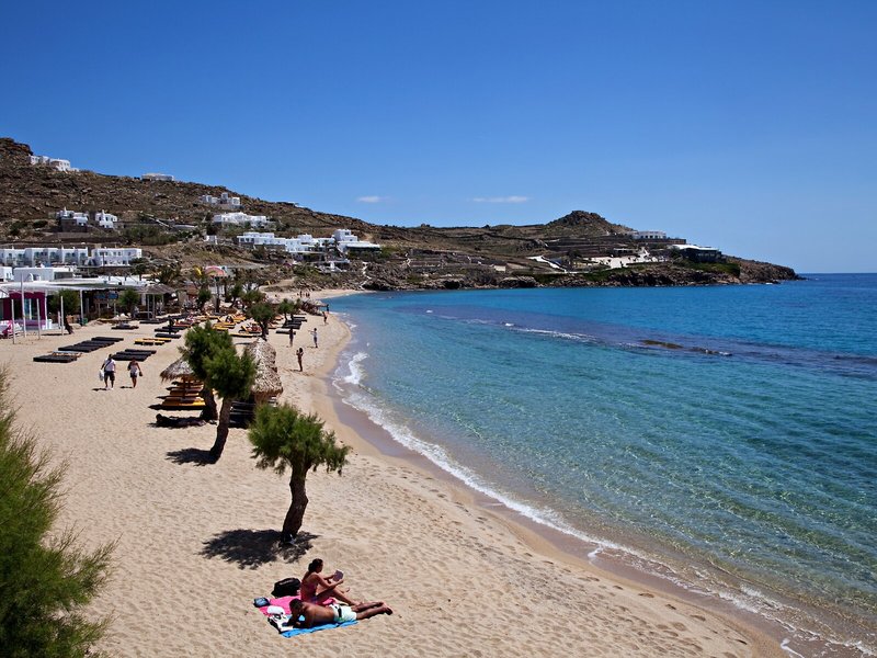 Lage & Umgebung Das Hotel liegt nur etwa 300 m vom Paradise Beach und nur rund 5 km von Mykonos entfernt. Die Bushaltestelle in Richtung Stadtzentrum Mykonos befindet sich in der Nähe des Hotels und die Transferzeit vom Flughafen beträgt rund 10 min.