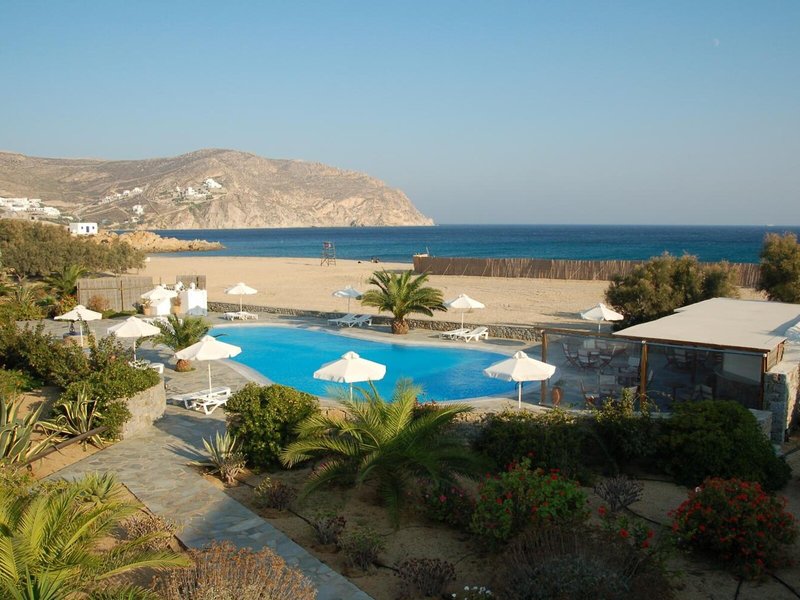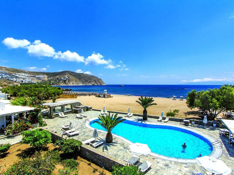 Lage & Umgebung Dieses Hotel auf Mykonos liegt am Agrari Strand, etwa 7 km vom Zentrum entfernt. Zum alten Hafen gelangt man nach ungefähr 8 km, zum neuen Hafen nach ca. 9 km und zum Flughafen nach etwa 4 km.