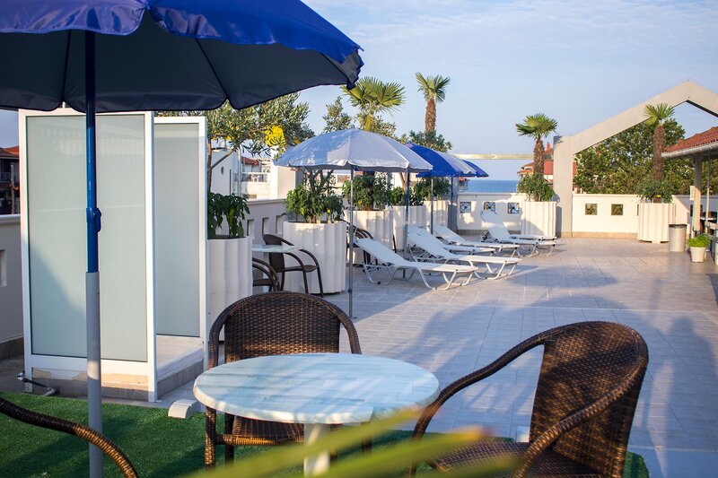 Das Hotel ist 100 m vom Sandstrand entfernt gelegen. Die Stadt Katerini ist ca. 8 km entfernt. In einem Umkreis von 100 m liegen Bars, Restaurants und andere Unterhaltungsmöglichkeiten. Der Flughafen von Thessaloniki ist ca. 43 km entfernt.