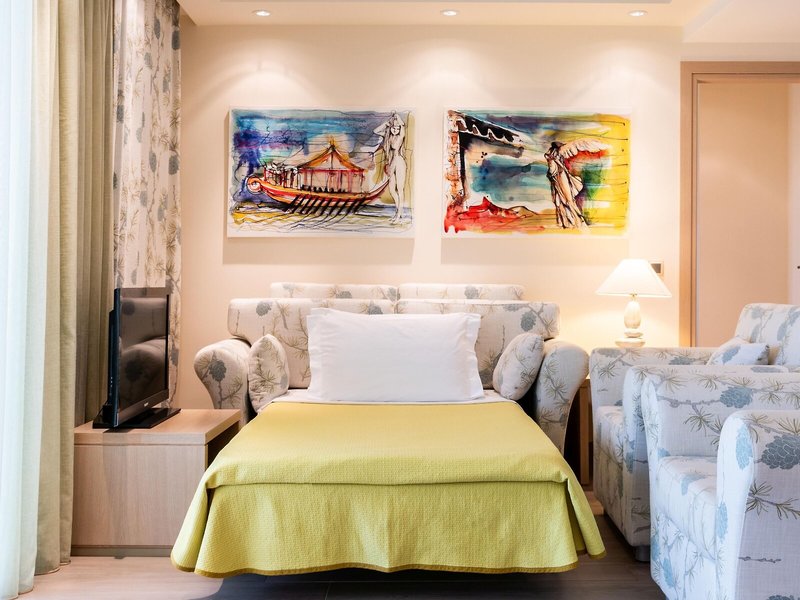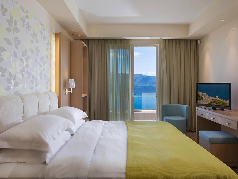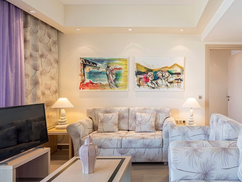 Elhelyezés: A szobák klímával és fűtéssel felszereltek. A vendégek pihenhetnek és élvezhetik a tengerre néző kilátást a legtöbb szoba erkélyén vagy saját teraszán. A szobákban egy king-size ágy és egy kanapé található. Külön hálószobák vannak. Pótágy kérhető. Széf és íróasztal is rendelkezésre áll. A konyhasarok hűtőszekrénnyel felszerelt. Ezen kívül van telefon, TV és WiFi (ingyenes). A fürdőszobában zuhanyzó, hajszárító és fürdőköpeny található. A kozmetikai termékek extra kényelmet biztosítanak a fürdőszobákban. Akadálymentesített szobák is rendelkezésre állnak akadálymentesített fürdőszobával. A szálloda családi és nemdohányzó szobákat kínál.