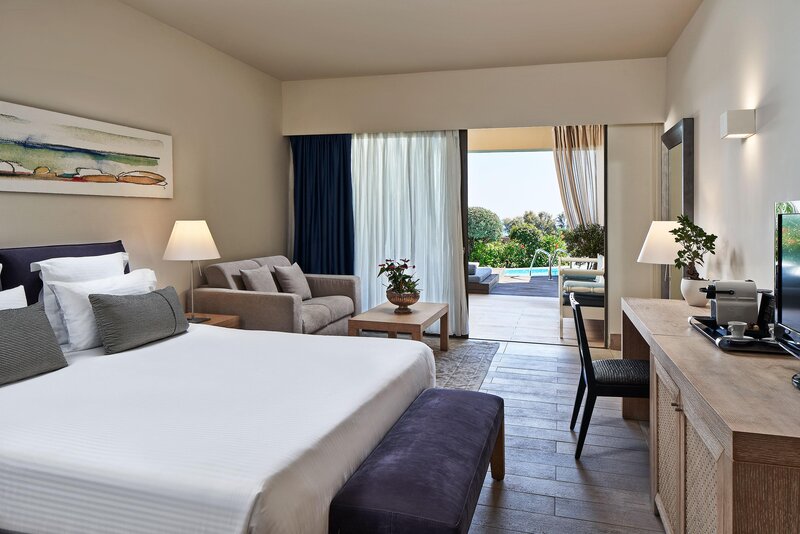 standard szobák fürdőszobával/WC-vel, hajszárítóval, WiFi-vel (ingyenes), telefonnal, rádióval, minibárral (adott esetben térítés ellenében), légkondicionálóval, fűtéssel és TV-vel felszereltek. Ezek oldalsó vagy közvetlen tengerre néző kilátással is foglalhatók. A prémium szobák ugyanazokkal a kényelemmel rendelkeznek, de nagyobbak. A lakosztályokban külön nappali és hálószoba található