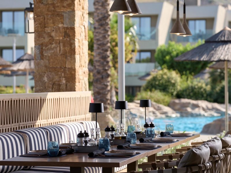 - Hauptrestaurant „Thalassa Dining Room & Al Fresco terrace“: Küche: asiatisch, griechisch, international, italienisch, landestypisch, mediterran, mexikanisch, regional, Fisch/Meeresfrüchte, Grillgerichte, Sushi, glutenfreie Gerichte: ohne Gebühr, Anfrage notwendig, Kinderbuffet: ohne Gebühr, Anfrage nicht notwendig, lactosefreie Gerichte: ohne Gebühr, Anfrage notwendig, vegetarische Gerichte, vegane Gerichte, Buffet, Showcooking, Anfrage & Reservierung nicht notwendig, ohne Gebühr, saisonabhängig, täglich 07:30 Uhr - 10:30 Uhr, 12:30 Uhr - 14:30 Uhr und 18:30 Uhr - 21:15 Uhr, klimatisierbar, mit Terrasse, Kinderhochstuhl, angemessene Kleidung erwünscht
