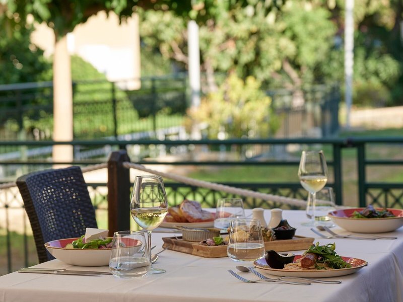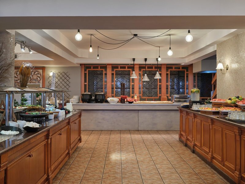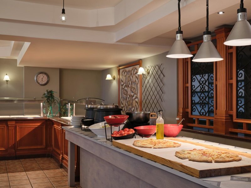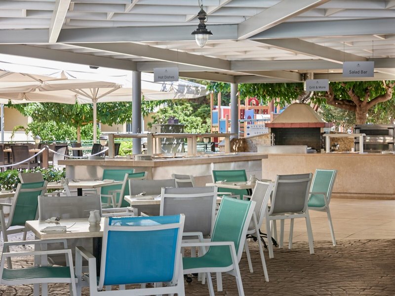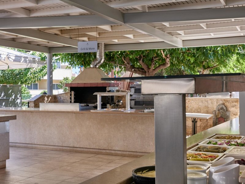 - Restaurant „Pergola Pool Side Taverna“: Küche: griechisch, international, landestypisch, regional, Fisch/Meeresfrüchte, Grillgerichte, Buffet, Showcooking, Reservierung nicht notwendig, ohne Gebühr, wetterabhängig, täglich 12:30 Uhr - 14:15 Uhr, mit Terrasse, am Pool, Kinderhochstuhl