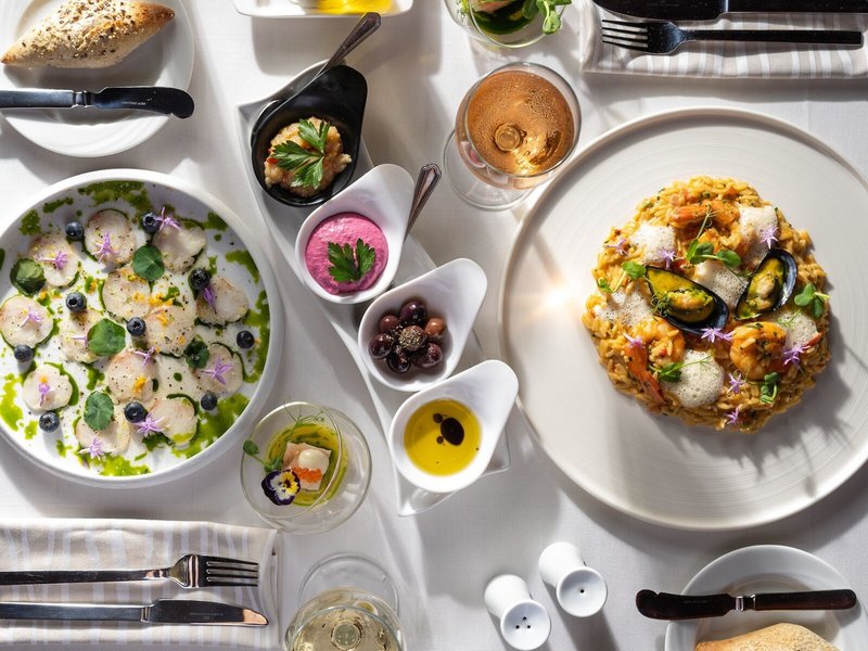 - Hauptrestaurant „Archipelagos“: Küche: regional, glutenfreie Gerichte: gegen Gebühr, saisonale Gerichte: gegen Gebühr, vegetarische Gerichte, Vollwertkost: gegen Gebühr, Buffet, à la carte, Showcooking, bei All Inclusive inklusive, täglich 07:00 Uhr - 10:30 Uhr, 12:30 Uhr - 15:00 Uhr und 19:00 Uhr - 21:30 Uhr, klimatisierbar, Kinderhochstuhl, angemessene Kleidung erwünscht