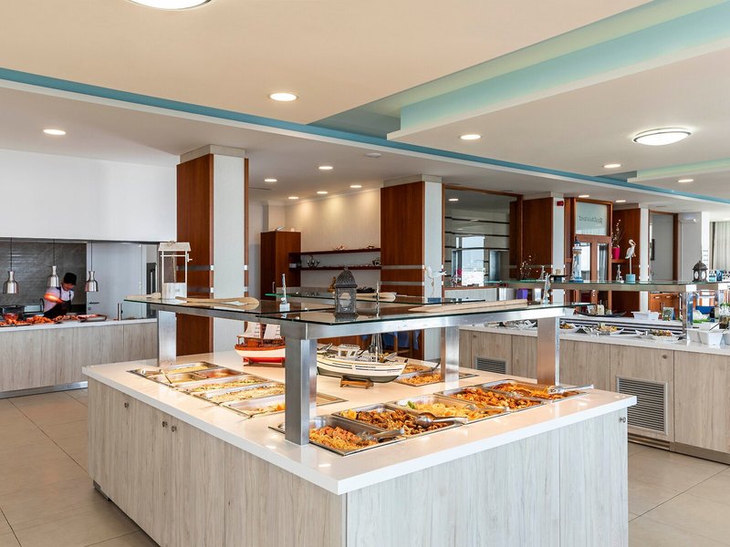 Essen & Trinken: Der gastronomische Bereich umfasst ein Restaurant und eine Bar. Das Hotel bietet als buchbare Verpflegungsleistungen Halbpension und All-Inclusive. Frühstück, Mittagessen und ein vielfältiges Abendbuffet sind lecker und abwechslungsreich gestaltet. Diätgerichte, glutenfreie Mahlzeiten und Kindermenüs werden auf Wunsch zubereitet. Zusätzlich sind spezielle Verpflegungsangebote und Snacks erhältlich. Die Unterbringung führt ein Sortiment alkoholischer und alkoholfreier Getränke.