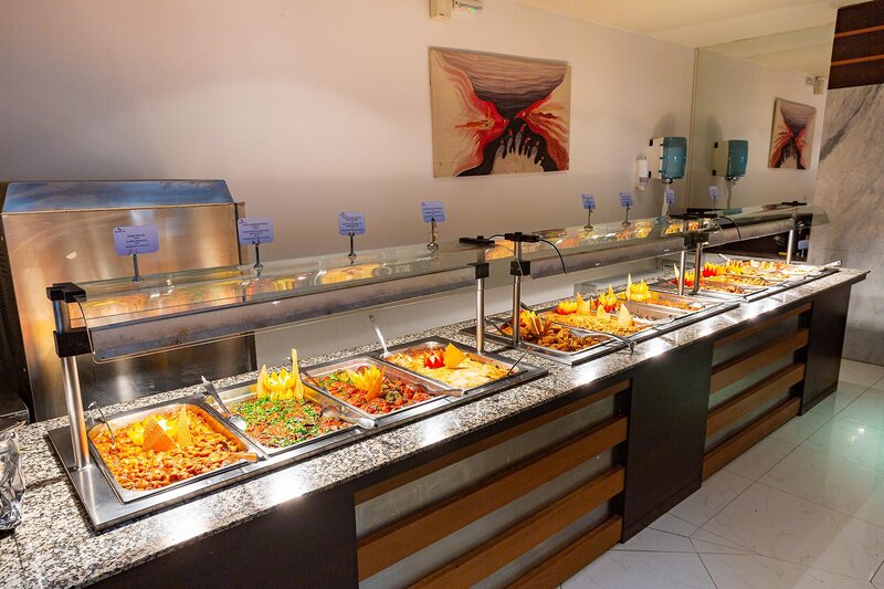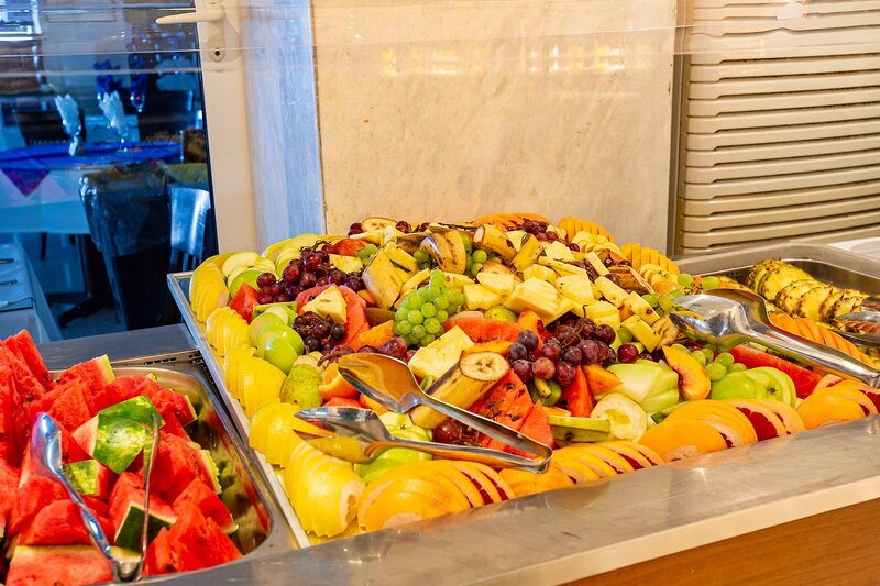 Félpanzió foglalható. Reggel és este gazdag büfé várja a vendégeket. Tipikus görög harapnivalókat kínálnak a la carte a snack bárban, felár ellenében.