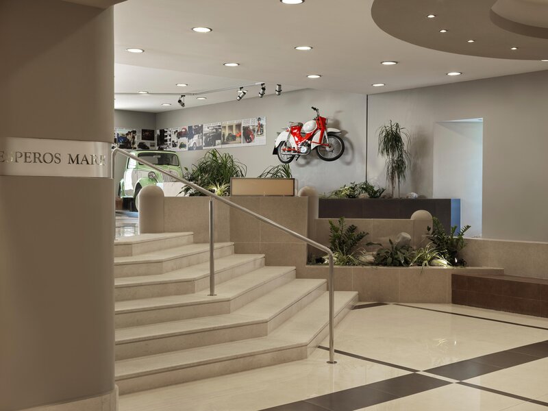 szálloda 152 szobával, előcsarnokkal, recepcióval, liftekkel, egy főétterem "Mira-Mare" alkalmi grillsütővel, pizzázó, Kafenion étterem és "Casino Lounge Bar" várja a vendégeket. Fodrászat, internetsarok is rendelkezésre áll. (beleértve ), WLAN (beleértve a szállodában), mosodai szolgáltatás, minibolt és autóbérlés.Kívül két édesvizű medence, egy laza folyó medence úszógyűrűkkel, egy strand medencebár, fűtött beltéri medence. Napozóágyak, A napernyők és a strandtörölközők a medence területén és a strandon is rendelkezésre állnak.