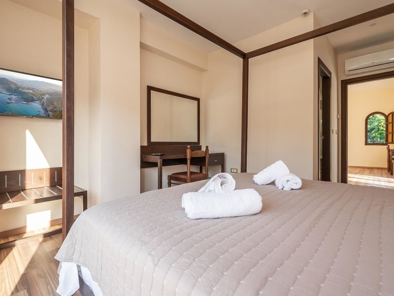 - Családi szoba típus (FZX1), apartman, főépületben, kert felőli oldal, részleges kilátás a tengerre, kilátás a Ladiko Beachre, kb. 45 - 50 m², utolsó teljes felújítás 2018-ban, utolsó részleges felújítás 2018-ban, összesen. szobák száma ebben a szobatípusban: 2, elrendezése a következő: 2 db kétágyas szobából áll, ajtók nélkül, nappalival, 2 egyszemélyes ággyal (150x130cm), 1 franciaágy (150x130cm), 1 kanapé, klíma: ingyenes, egyénileg állítható, hideg, meleg, padló: parketta, széf, kanapé, íróasztal, hűtőszekrény, kávéfőző, kávé/teafőző, Internet : WLAN/WiFi : ingyenes, televízió: síkképernyős, műholdas TV, takarítás: naponta, ingyenes, fürdőkád vagy zuhanyzó, zuhany, WC, fürdőköpeny, hajszárító, kozmetikai tükör, erkély: ülőhellyel, erkéllyel vagy terasszal: ülőhellyel