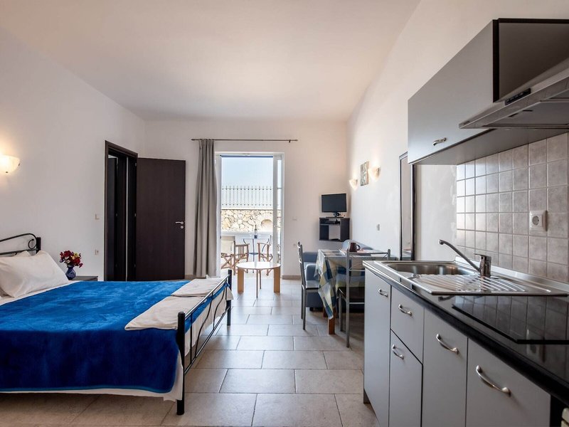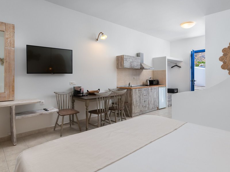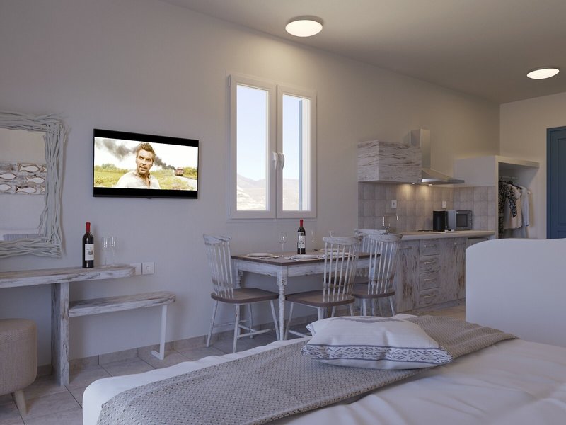 So wohnen Sie: In den Zimmern gibt es eine Klimaanlage. Die Gäste können den Bergblick von Balkon oder Terrasse genießen. Die Zimmer verfügen über ein Doppelbett, ein Queensize-Bett oder ein Sofabett. Zustellbetten können angefordert werden. In den Zimmern befindet sich eine Kochnische. Darüber hinaus sind ein TV-Gerät und WiFi (ohne Gebühr) vorhanden. Die Unterbringung bietet Familien- und Nichtraucherzimmer.